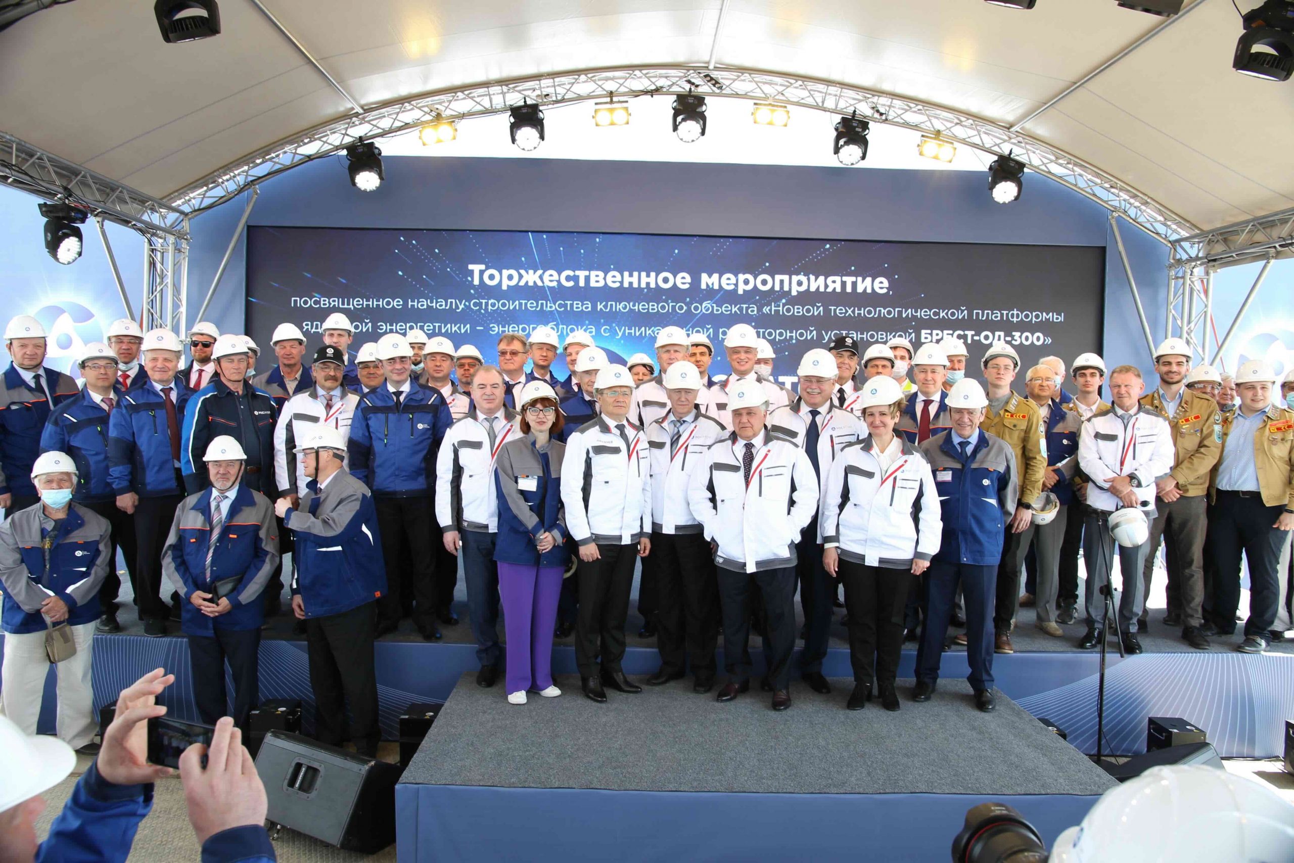 Церемония заливки первого бетона первого в мире энергоблока четвертого поколения с быстрым реактором естественной безопасности БРЕСТ-ОД-300 на Сибирском Химическом Комбинате. Северск, 8 июня 2021 г.
